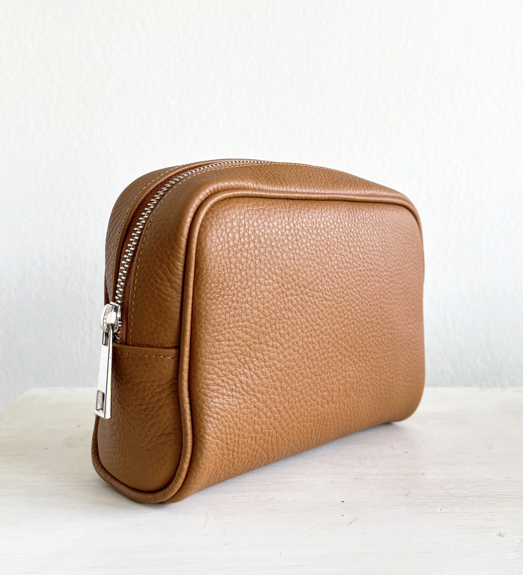 Neceser confeccionado en cuero vacuno graneado color suela.